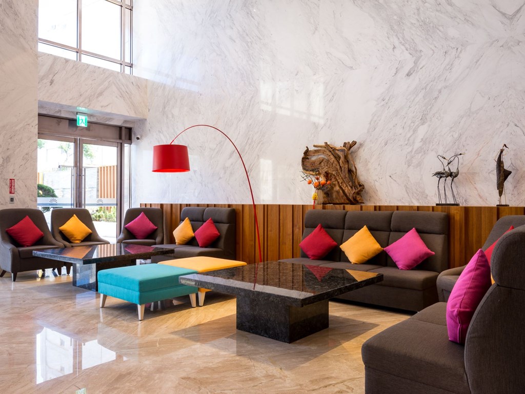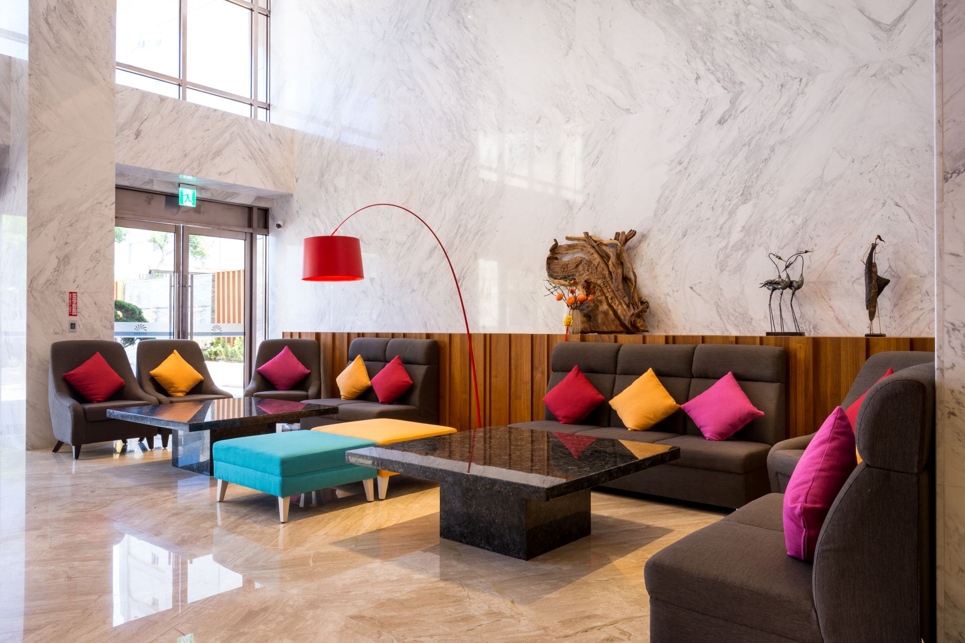 The high-ceiling, six-meter-high lobby satisfies our guests with a completely new experience created by its handsomely elegant atmosphere the moment they arrive at the hotel.