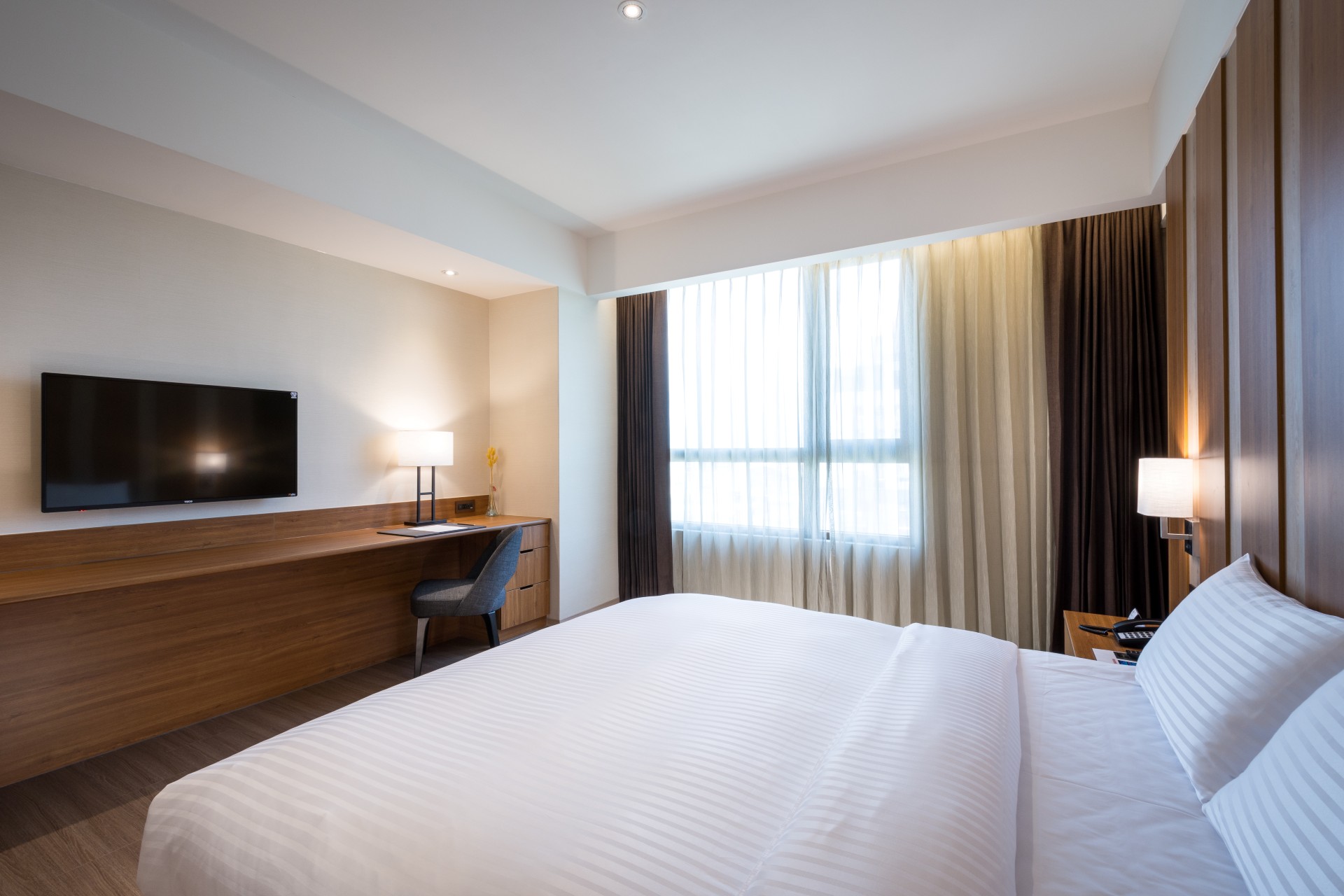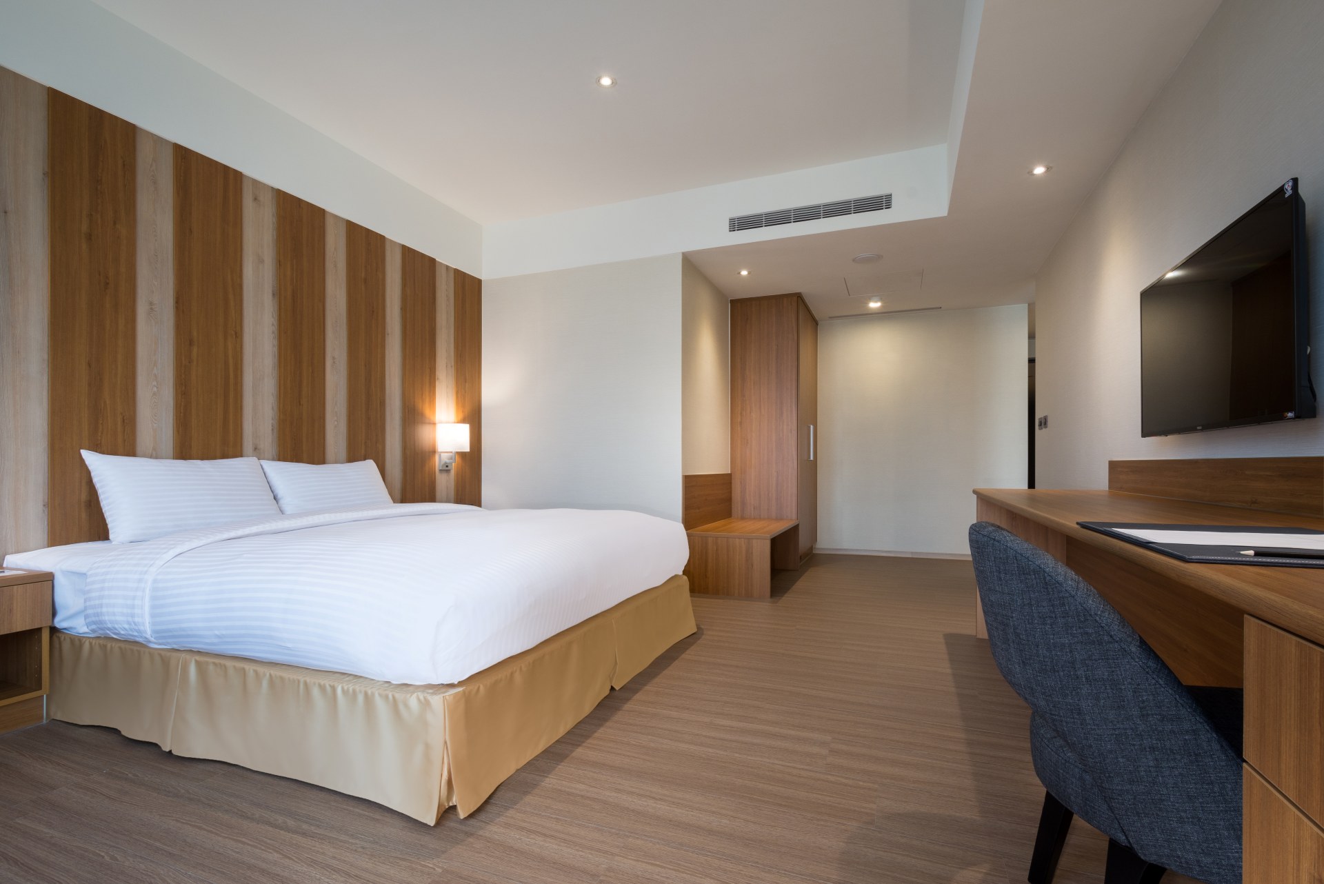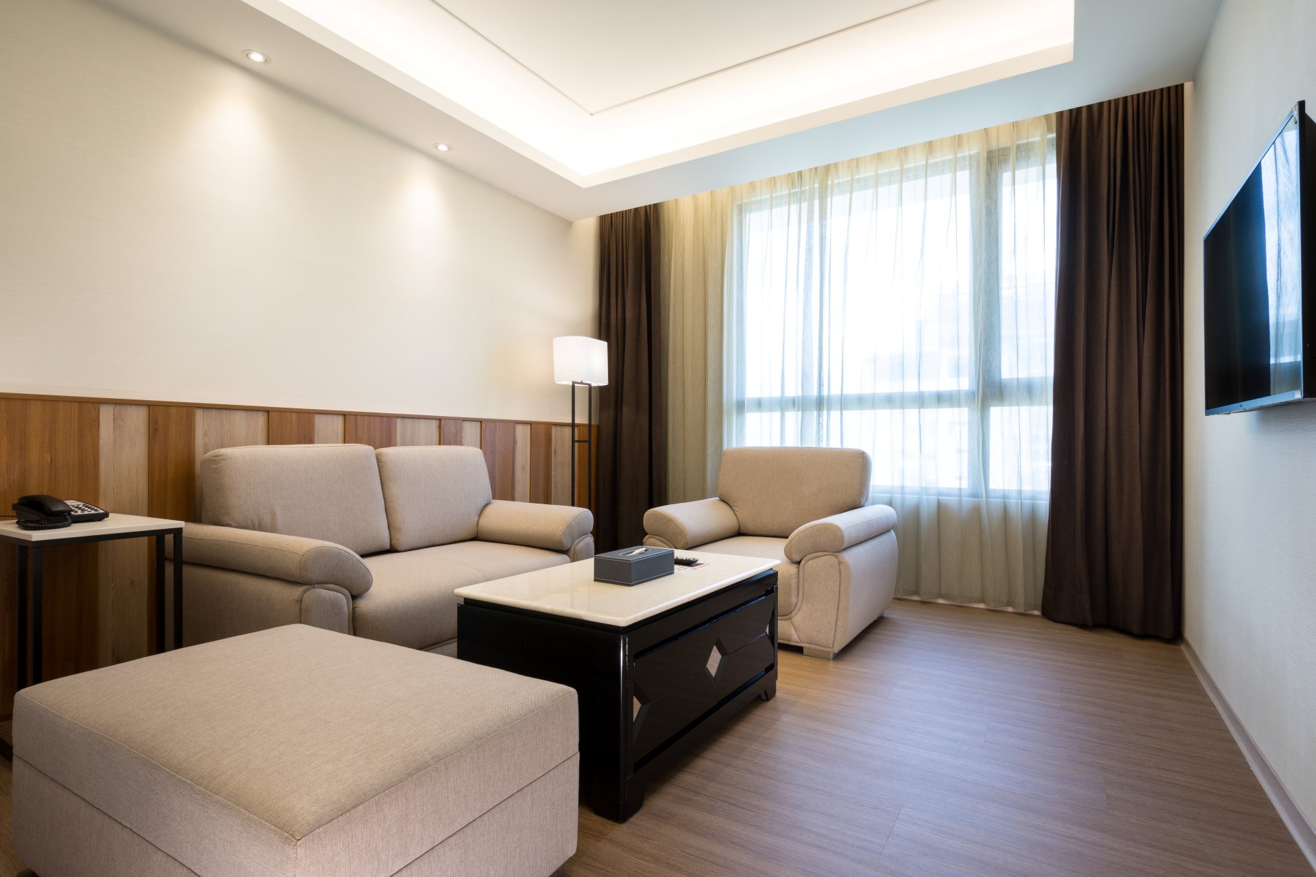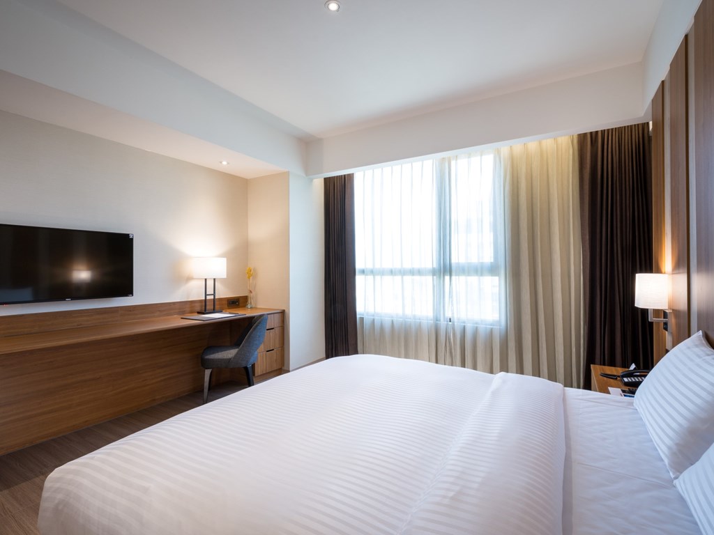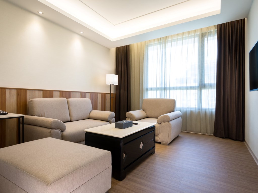 There are only two Full Kind Executive Suites available in our hotel. Based on separated design of living room and bedroom, the humble and calm style reflects our appeal, brining you a completely new feeling of freshness and unique lodging experience.