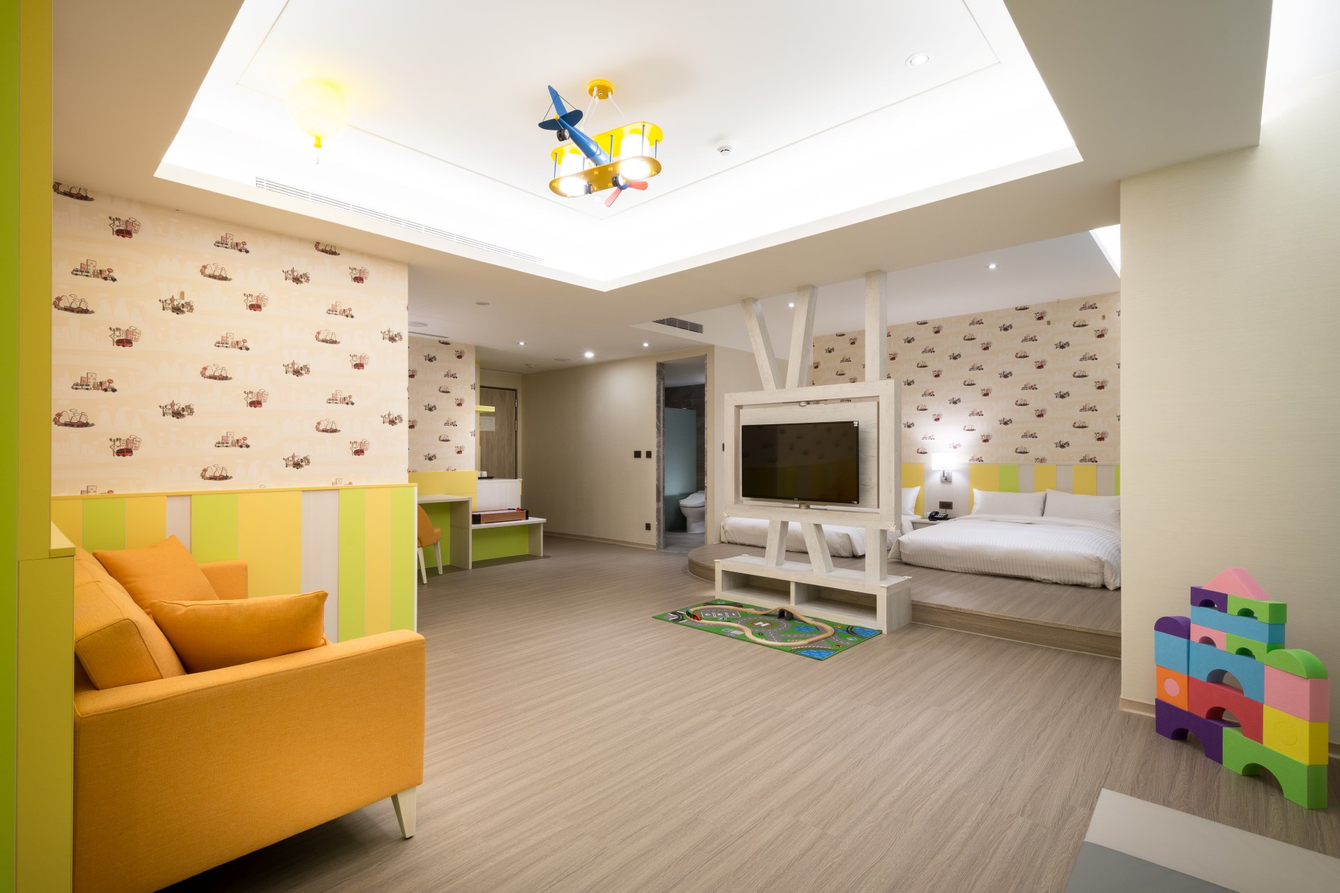 Large interior space furnished with room amenities which involve safety planning offers you a more carefree and secured lodging environment. The slide set up in the room allows your child to create unforgettable memories of the trip to Hualien.